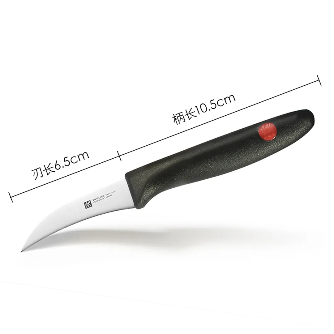 刀身采用双立人特殊配方不锈钢冲压件,碳和铬的比例达到较佳平衡,兼具硬度和锐度,经FRIODUR冰煅工艺处理,令钢材结构更稳定,刀具抗腐蚀、韧性十足,刀刃更持久锋利。微向内弯的刀片形状可以配合蔬菜水果的弧度,去皮、切割,轻松自如。