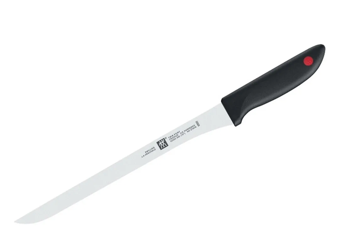 刀身采用双立人特殊配方不锈钢冲压件,碳和铬的比例达到较佳平衡,兼具硬度和锐度,经FRIODUR冰煅工艺处理,令钢材结构更稳定,刀具抗腐蚀、韧性十足,刀刃更持久锋利。直刃,适合切割烤肉