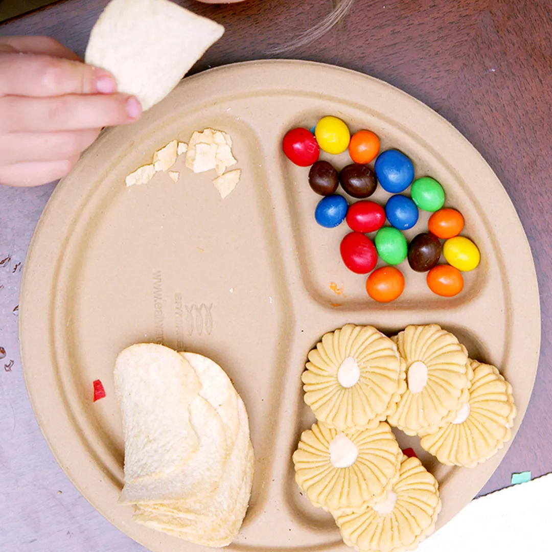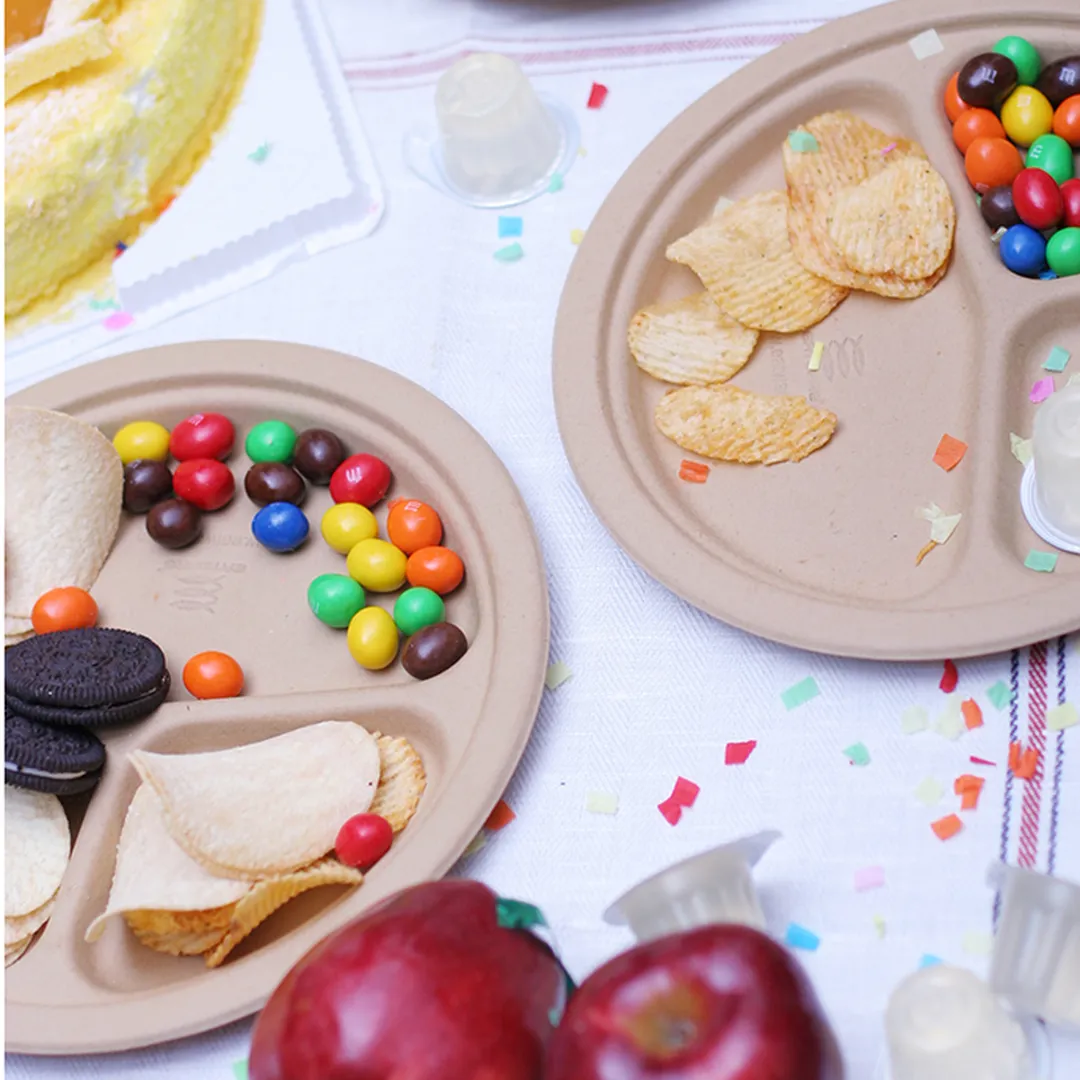 全天然环保可降解圆盘/分割盘(9英寸三格浅圆盘)