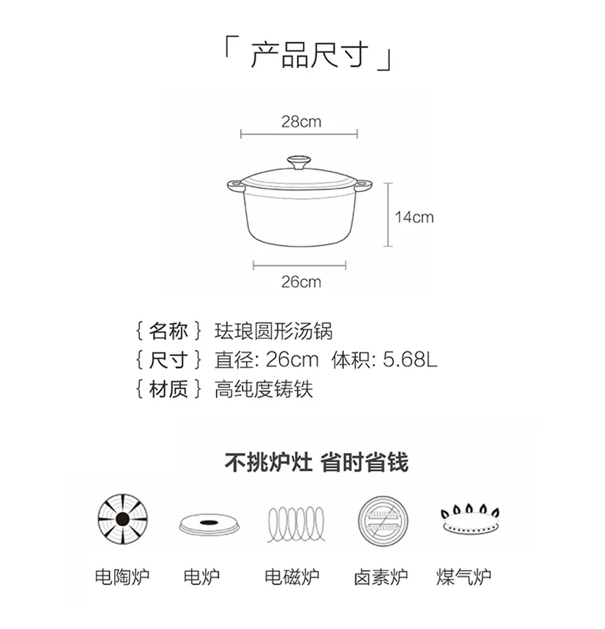 26CM珐琅圆形汤锅/圆弧盖(红色)