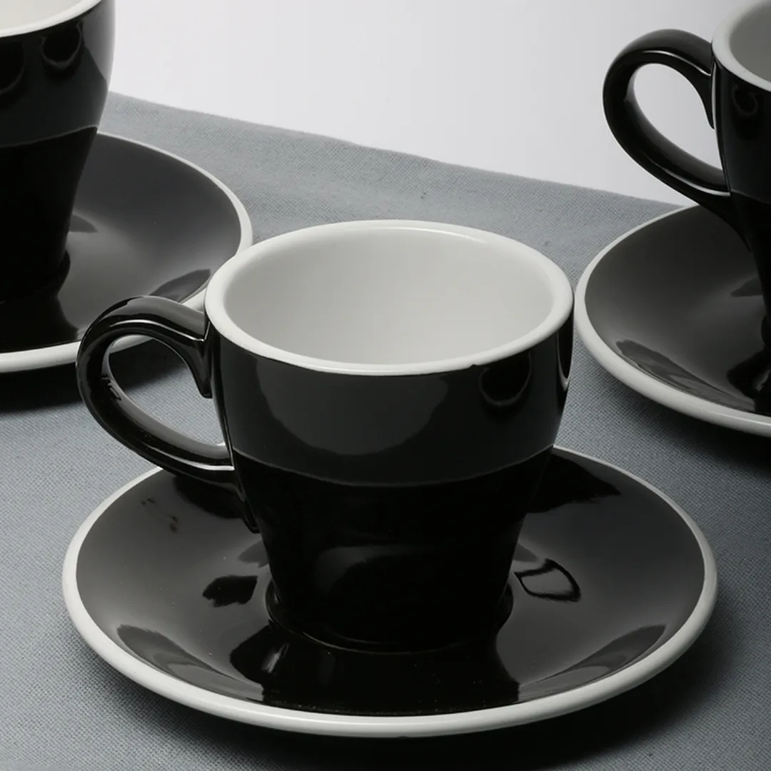 咖啡店拉花专用级咖啡杯,经1300℃高温烧制,不含铅镉,健康环保。杯身加厚设计,具有良好的保温效果。杯底弧面设计,有助于提高拉花效果。高强硬度,耐摔耐用可微波,可机洗。杯碟多层叠放,节省贮藏空间。釉面细腻致密,色彩时尚亮丽。
