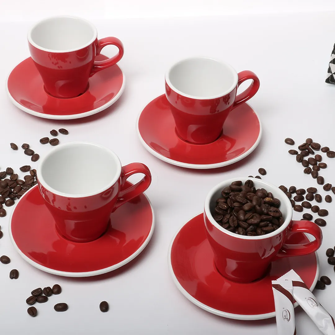 咖啡店拉花专用级咖啡杯,经1300℃高温烧制,不含铅镉,健康环保。杯身加厚设计,具有良好的保温效果。杯底弧面设计,有助于提高拉花效果。高强硬度,耐摔耐用可微波,可机洗。杯碟多层叠放,节省贮藏空间。釉面细腻致密,色彩时尚亮丽。