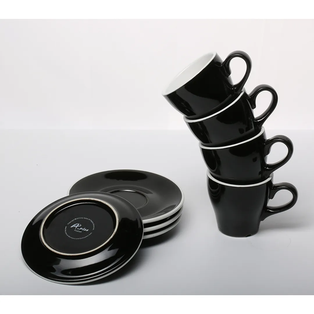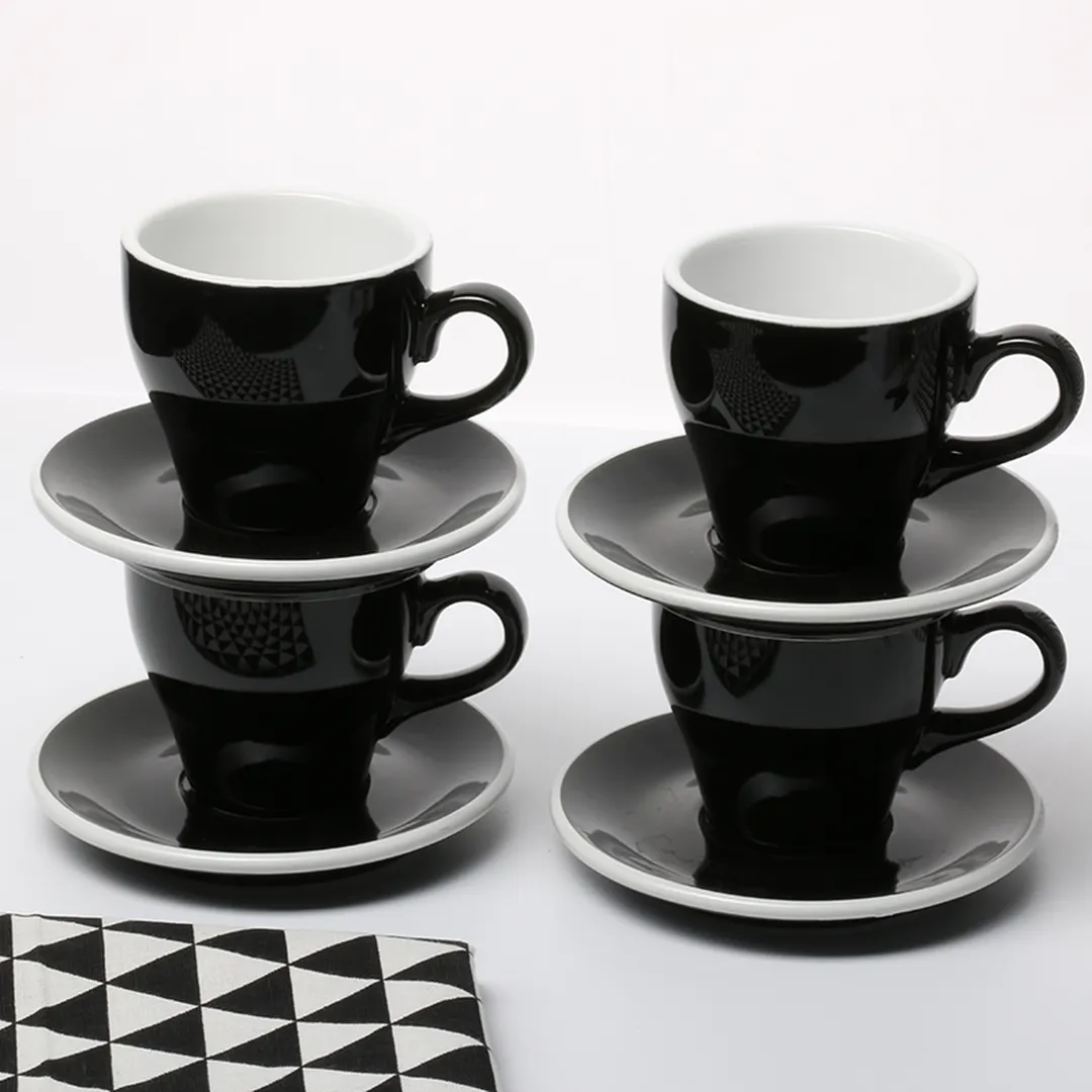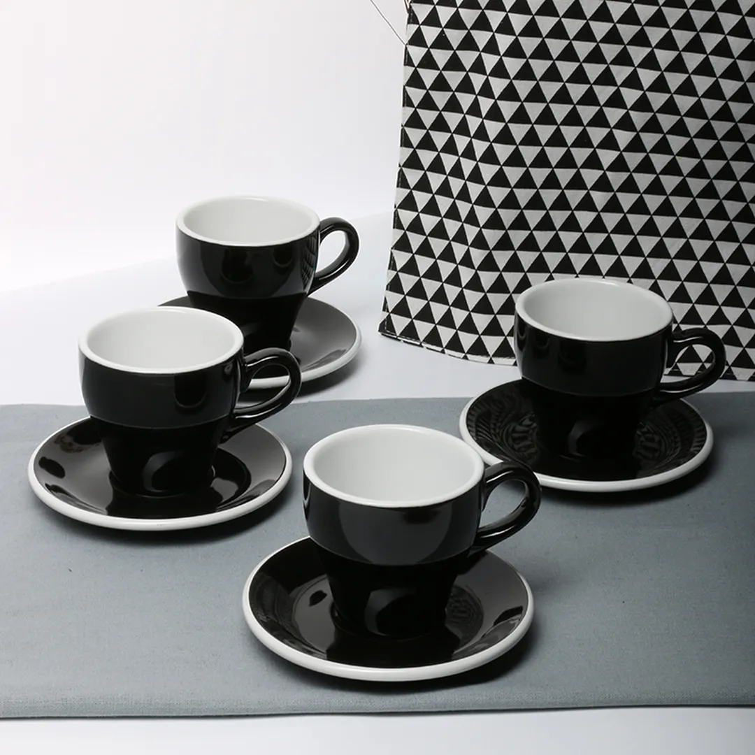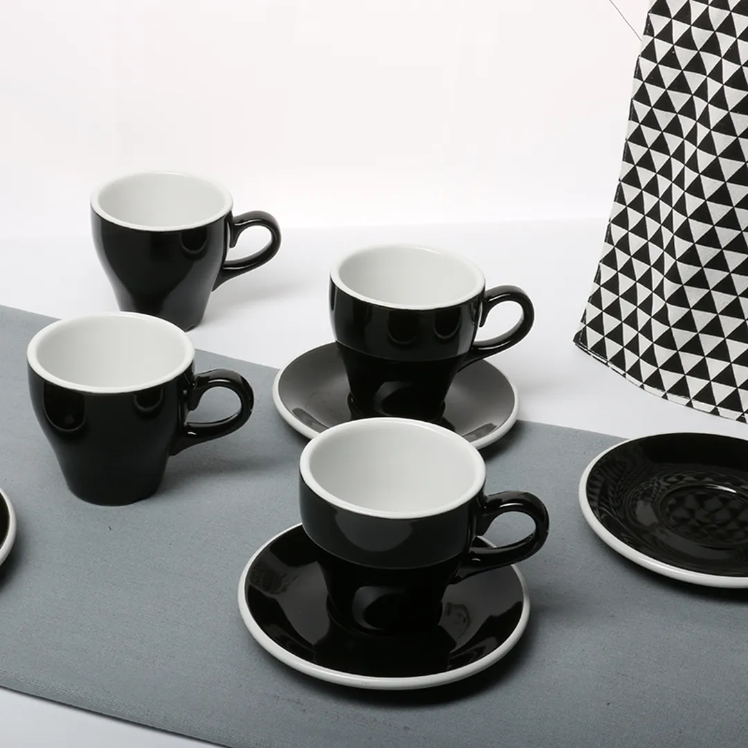 咖啡店拉花专用级咖啡杯,经1300℃高温烧制,不含铅镉,健康环保。杯身加厚设计,具有良好的保温效果。杯底弧面设计,有助于提高拉花效果。高强硬度,耐摔耐用可微波,可机洗。杯碟多层叠放,节省贮藏空间。釉面细腻致密,色彩时尚亮丽。