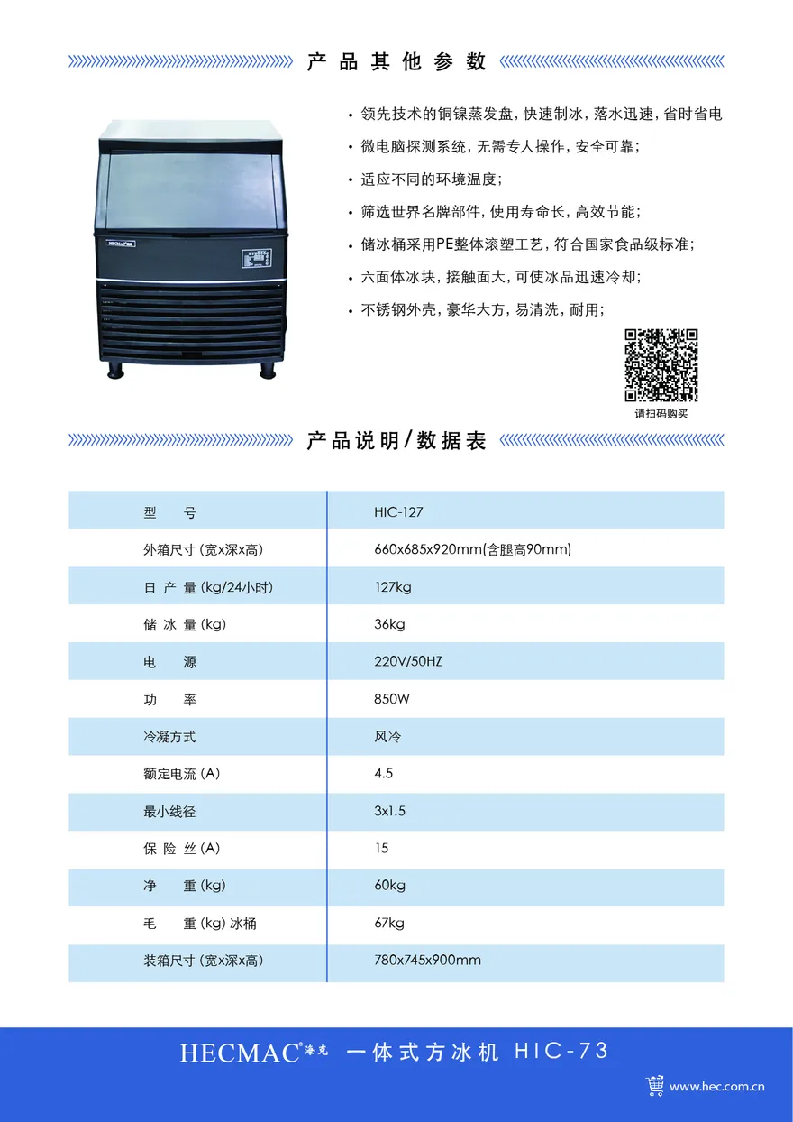 日产127kg/储冰36kg;一体机;风冷(HIC-127-ACB)