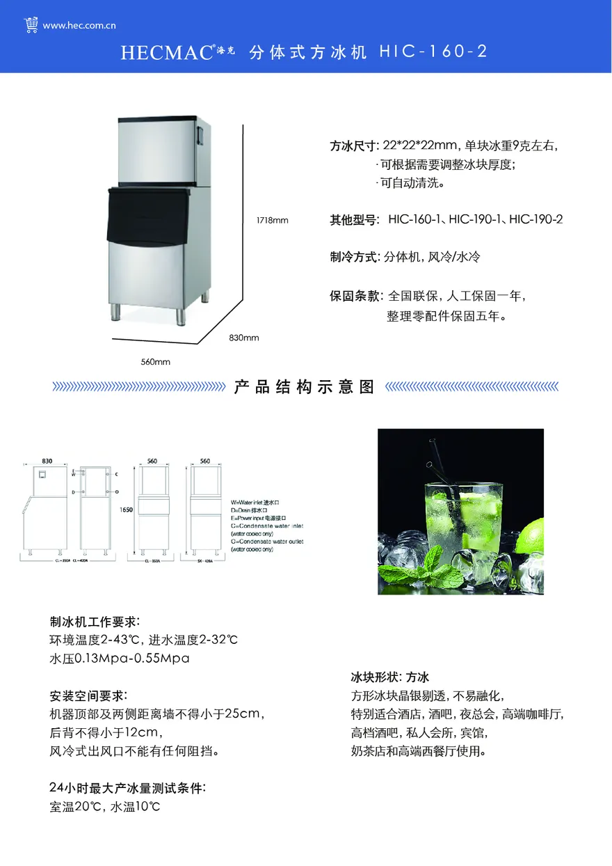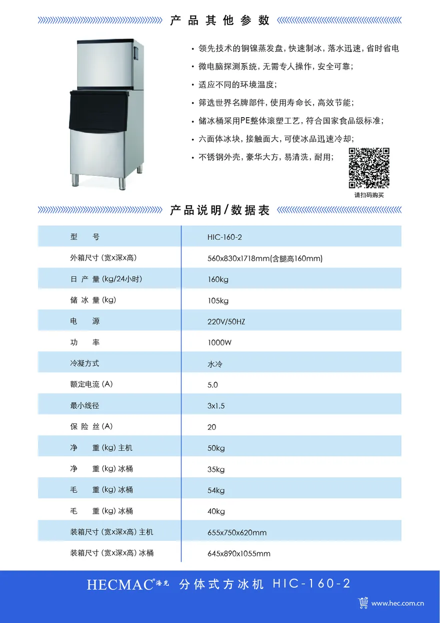 日产160kg/储冰105kg;分体机;水冷(主机HIC-160-2/储冰箱B275-EC-WCB)