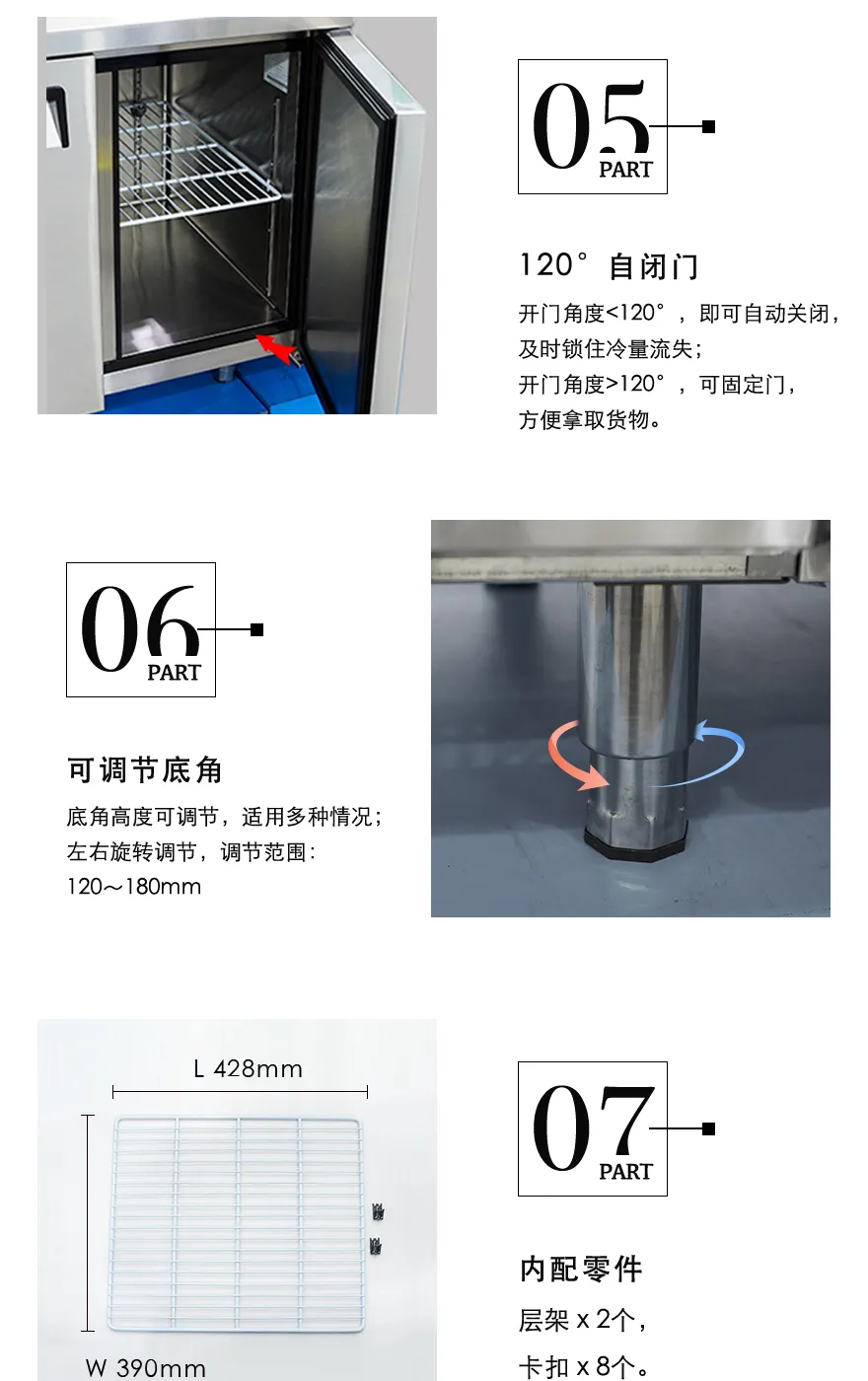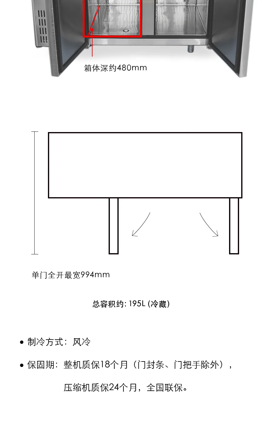 "温度范围:-2℃~+8℃;制冷方式:风冷/铜管; 内外箱:201材质;进口压缩机Embraco,整机18个月,压缩机24个月。"