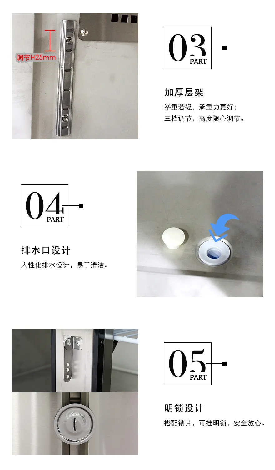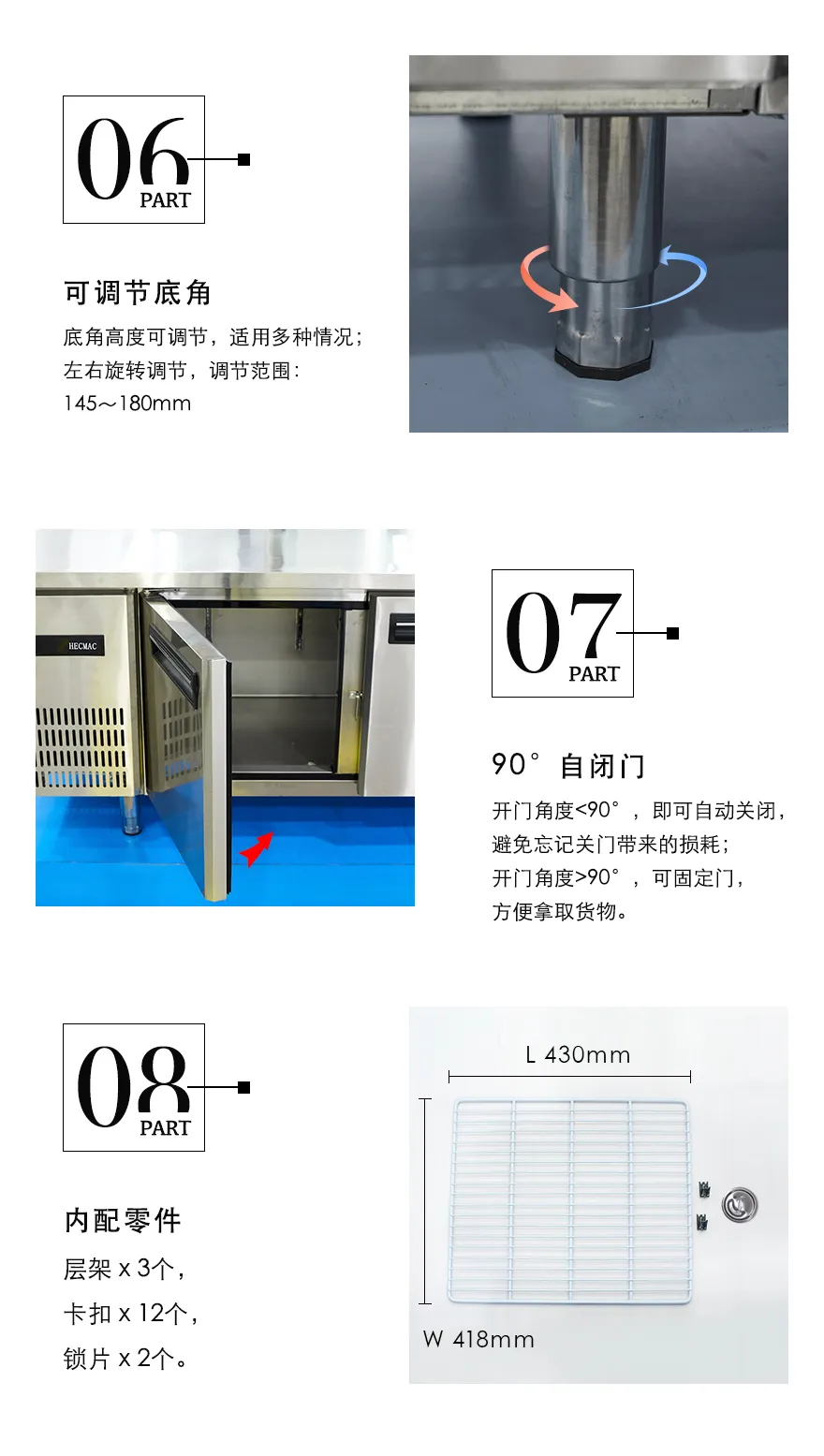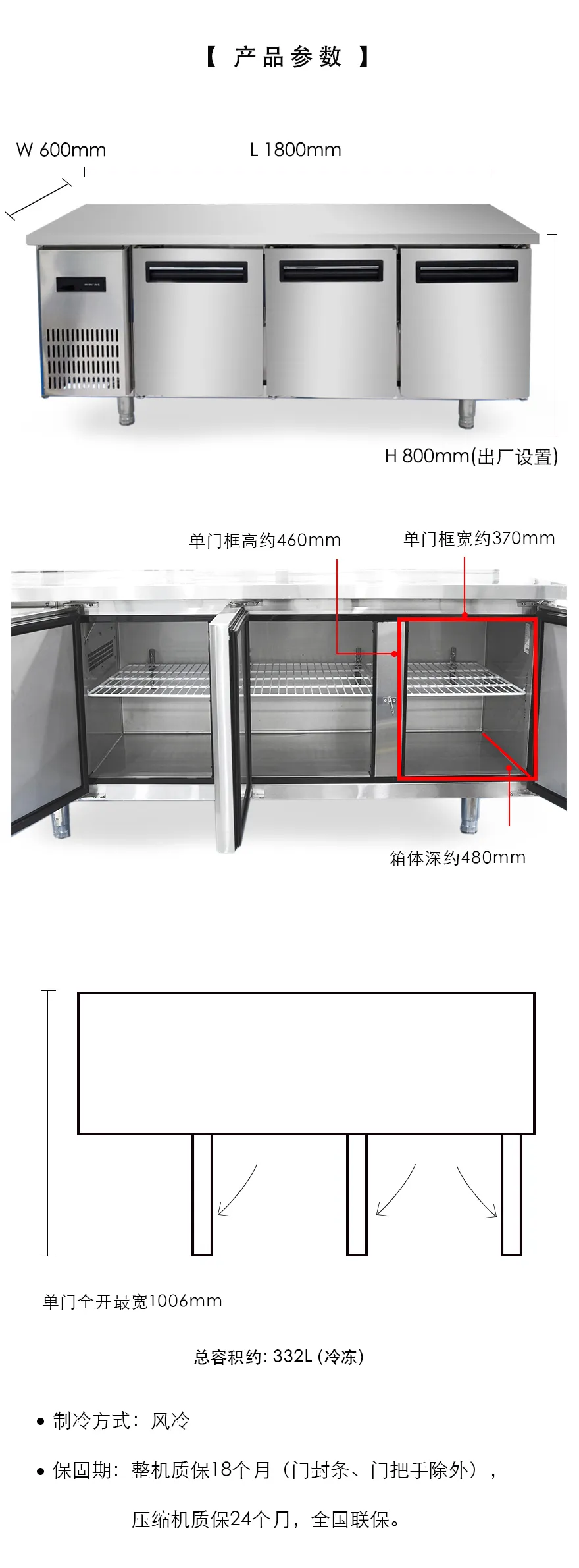 "温度范围:-18℃~-3℃;制冷方式:风冷/铜管; 内外箱:201材质;整机18个月,压缩机24个月。"