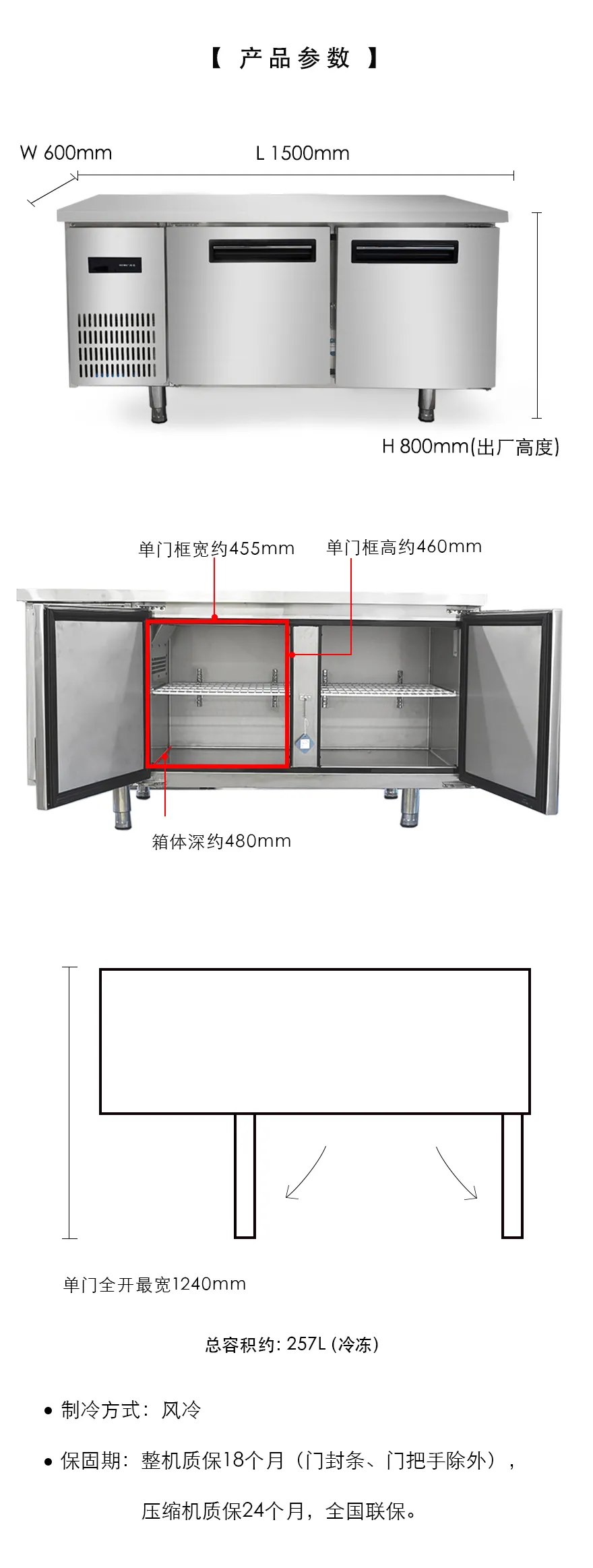 "温度范围:-18℃~-3℃;制冷方式:风冷/铜管; 内外箱:201材质;整机18个月,压缩机24个月。"