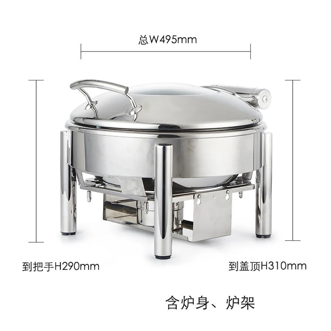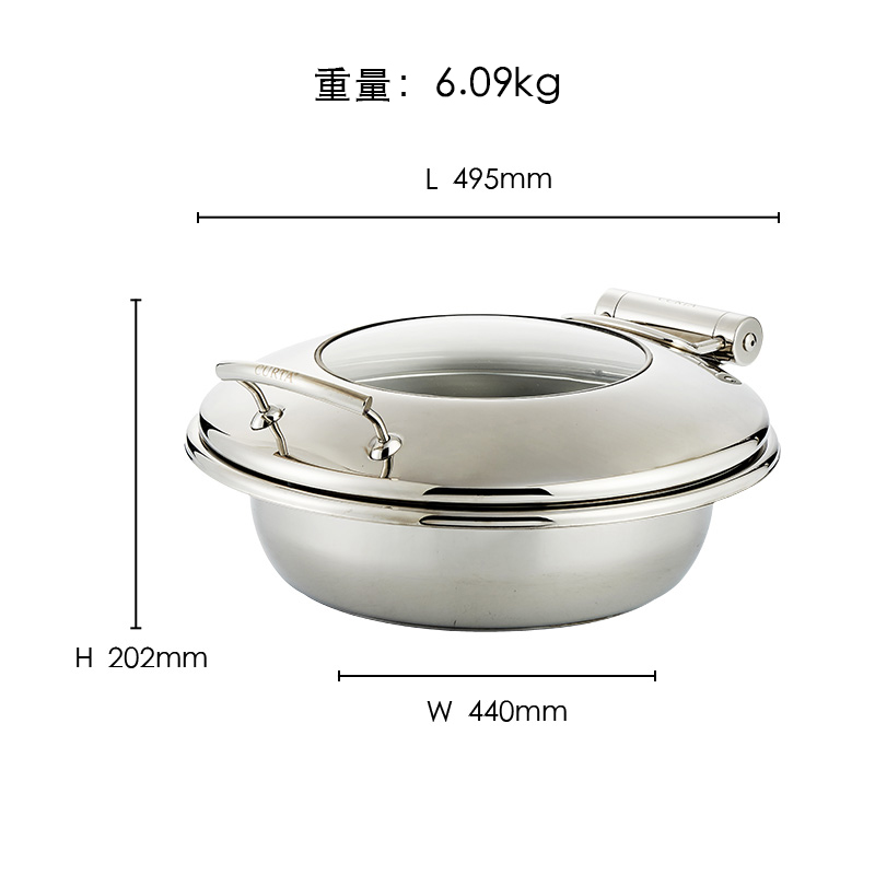 玻璃盖阻尼缓降式自助餐炉套装(圆形餐炉-大-电热板)