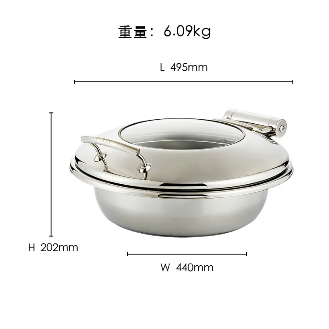 玻璃盖阻尼缓降式自助餐炉套装(圆形餐炉-大-酒精炉)
