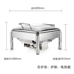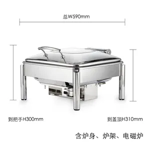玻璃盖阻尼缓降式自助餐炉套装(方形餐炉-中-电磁炉)