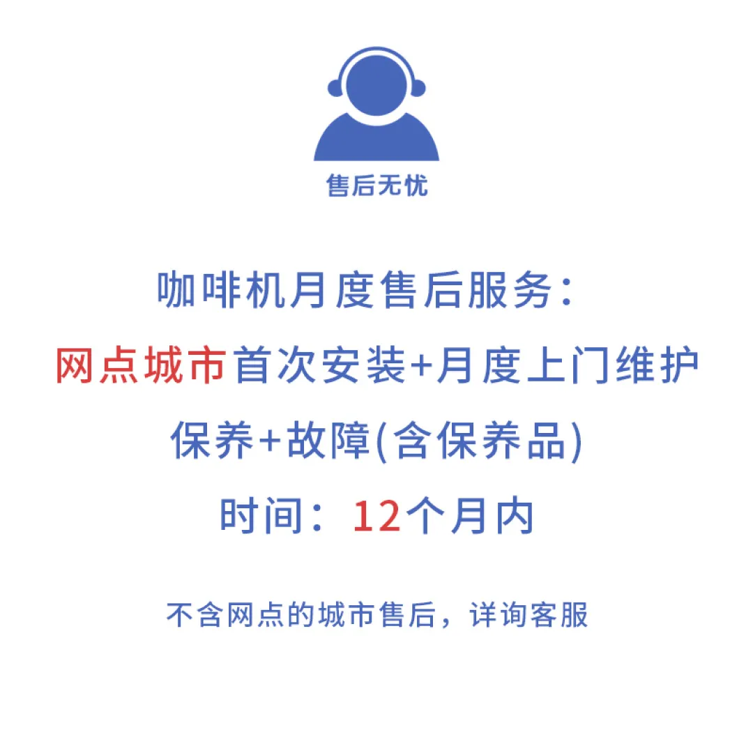 城市首次安装+月度上门维护保养+故障(含保养品),时间是12个月,咖啡机月度售后服务