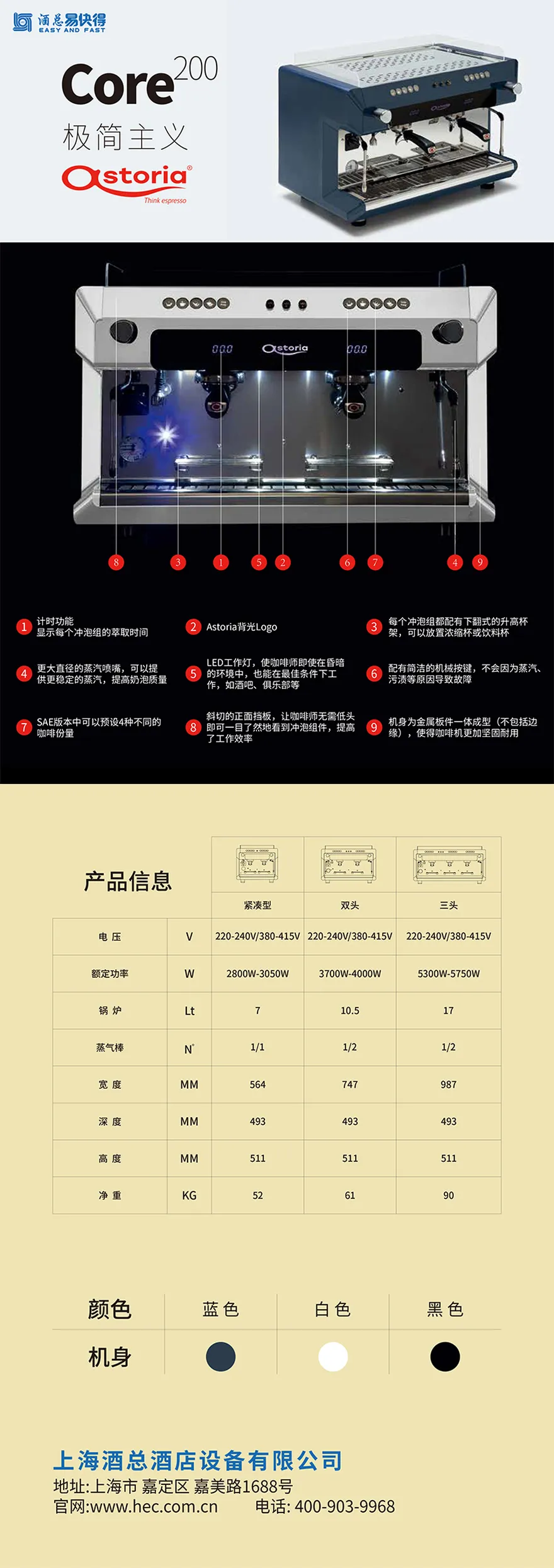 Astoria商用意式双头半自动咖啡机(黑色)