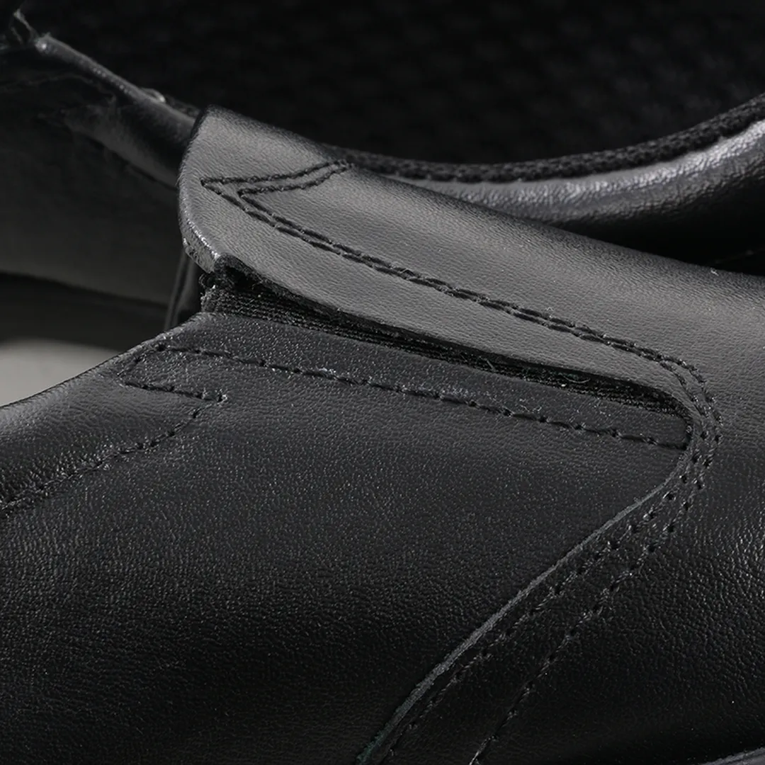 牛皮面料,大底为MD底;高科技底花设计,摩擦力最大化;特殊防滑配方,鞋底防水防油;特制的鞋垫,格外舒适 友情提示:本厨师鞋 鞋面为皮料材质 不具备防水特性 如鞋面皮料长时间遇水淋水 皮料可能会出现开裂现象 此不在质保范围