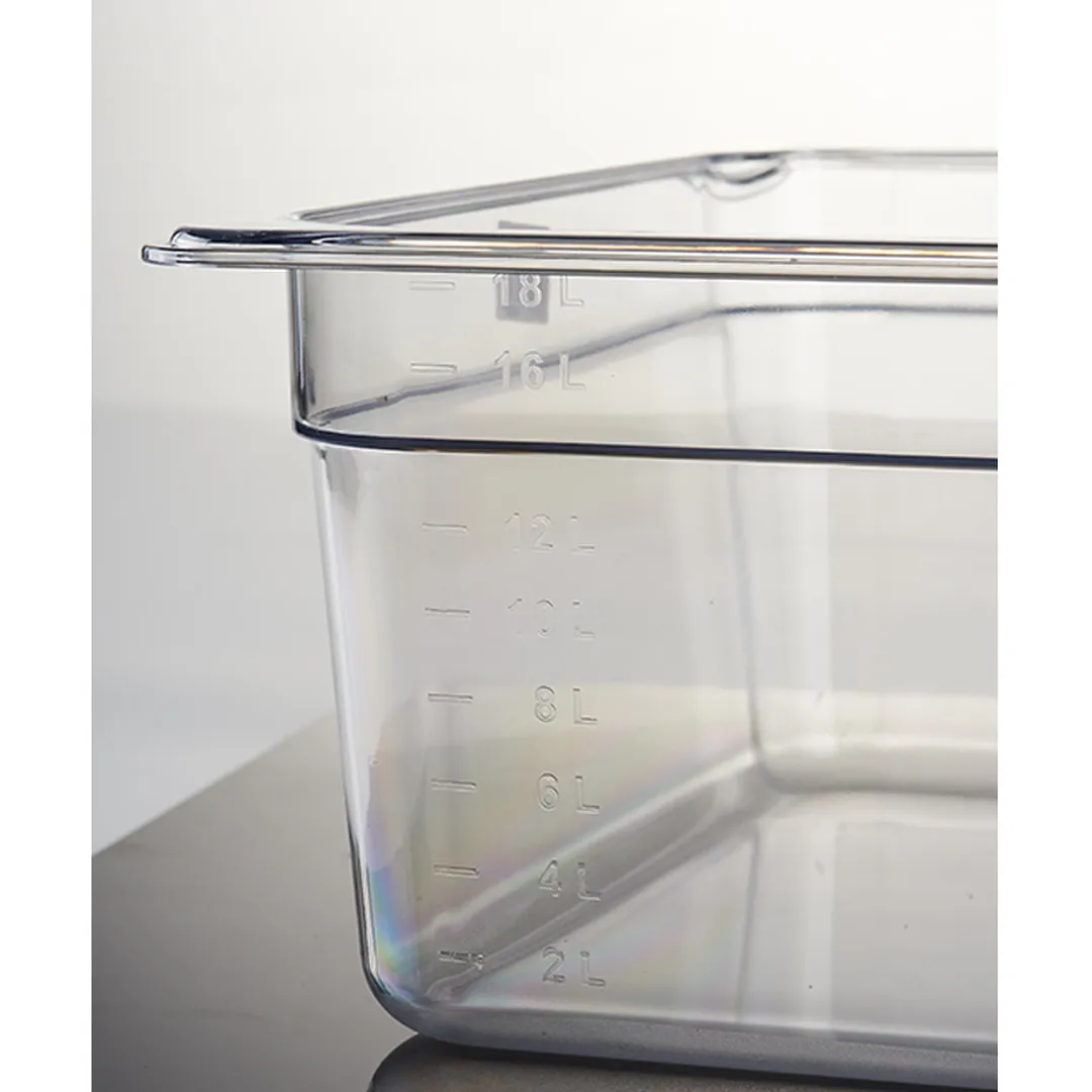 采用德国科思创COVESTRO(原拜耳)集团出品,Makrolon品牌、食品接触级的全新进口原料,成品全部通过美国NSF认证。PC材质。防摔,光滑,透明,不开裂,不变形,便于清洗。表面光滑不粘连,叠放时拿取容易。温度范围-40~99℃。肯德基、麦当劳等国际著名连锁餐厅使用中。