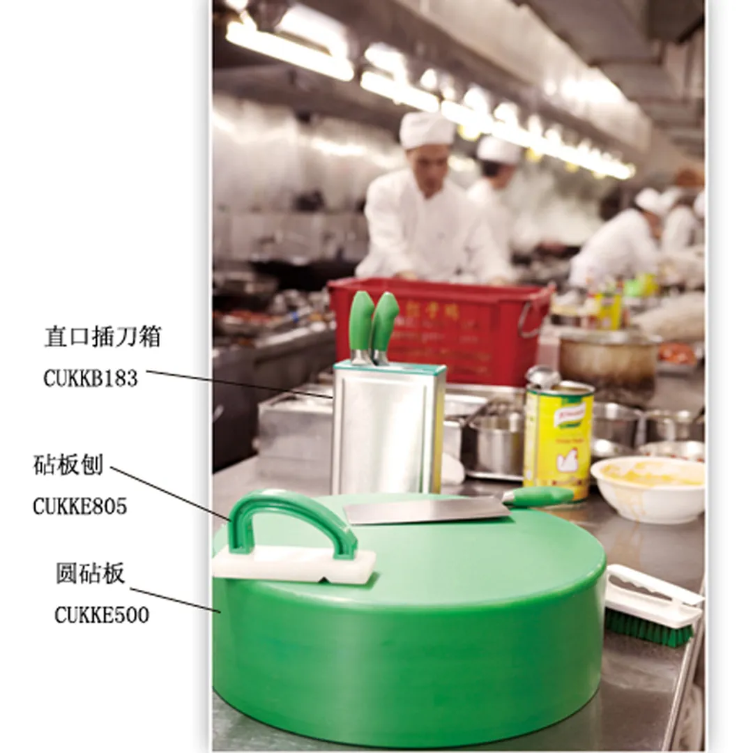 PE材质,厚150MM;由多层菜板经模压拼接,再整型而成;第一层经长久使用出现破损,可将破损层刨去;可视情况多次刨层,从而使使用寿命大大延长
