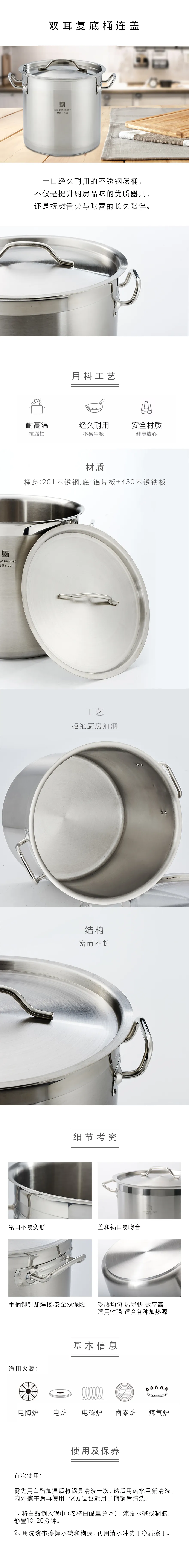桶身G01,底:铝片板+430不锈铁板;锅口不易变形,盖和锅口易吻合,节能;受热均匀,热导快,效率高,烹饪时间短;适用性强,适合各种加热源;代替CUKWA464