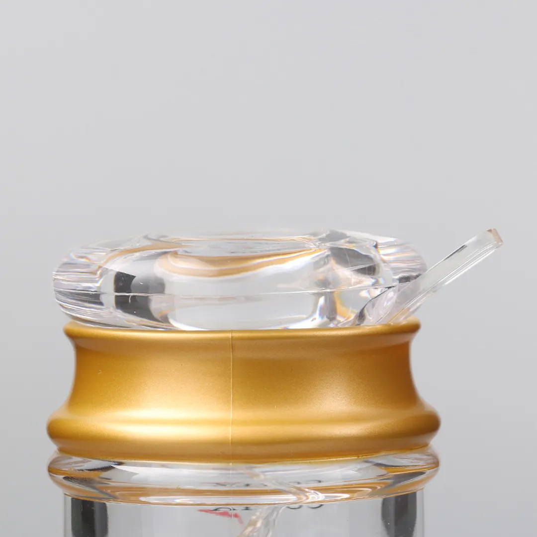 亚克力材质,盖上有缺口,可嵌入1把调味匙;适合盛放辣酱,果酱,调味酱等酱料;也适合盛放盐,糖等调味品;安全卫生,便于清洗,并有良好的牢固度