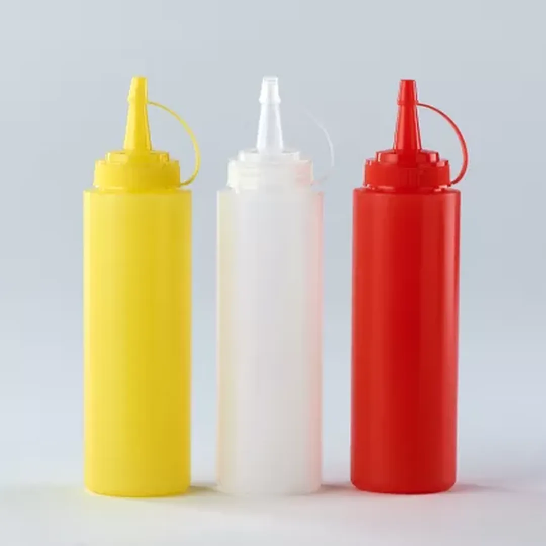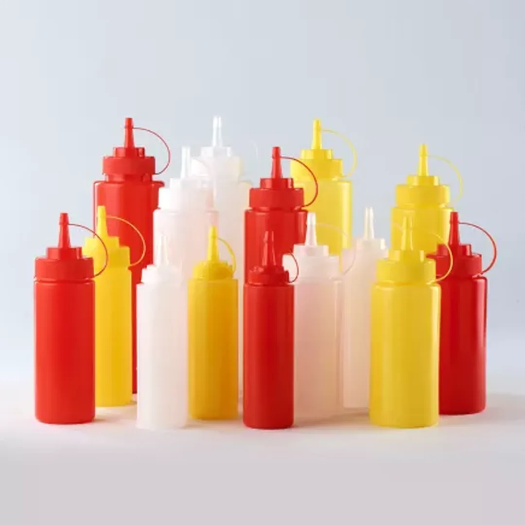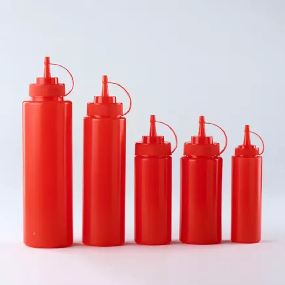 食品级PE制成,无异味;瓶身柔韧性强,挤压时握感极佳,酱料流出顺畅;耐用度高,不易脆化,经久耐用;盖上盖设计,盖紧密封后,运输,储存更加卫生